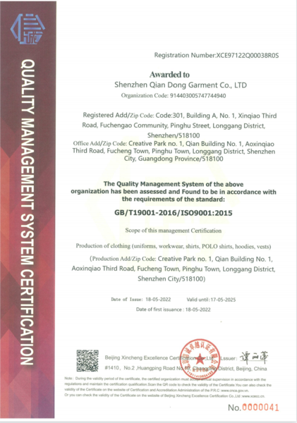 ISO质量认证证书